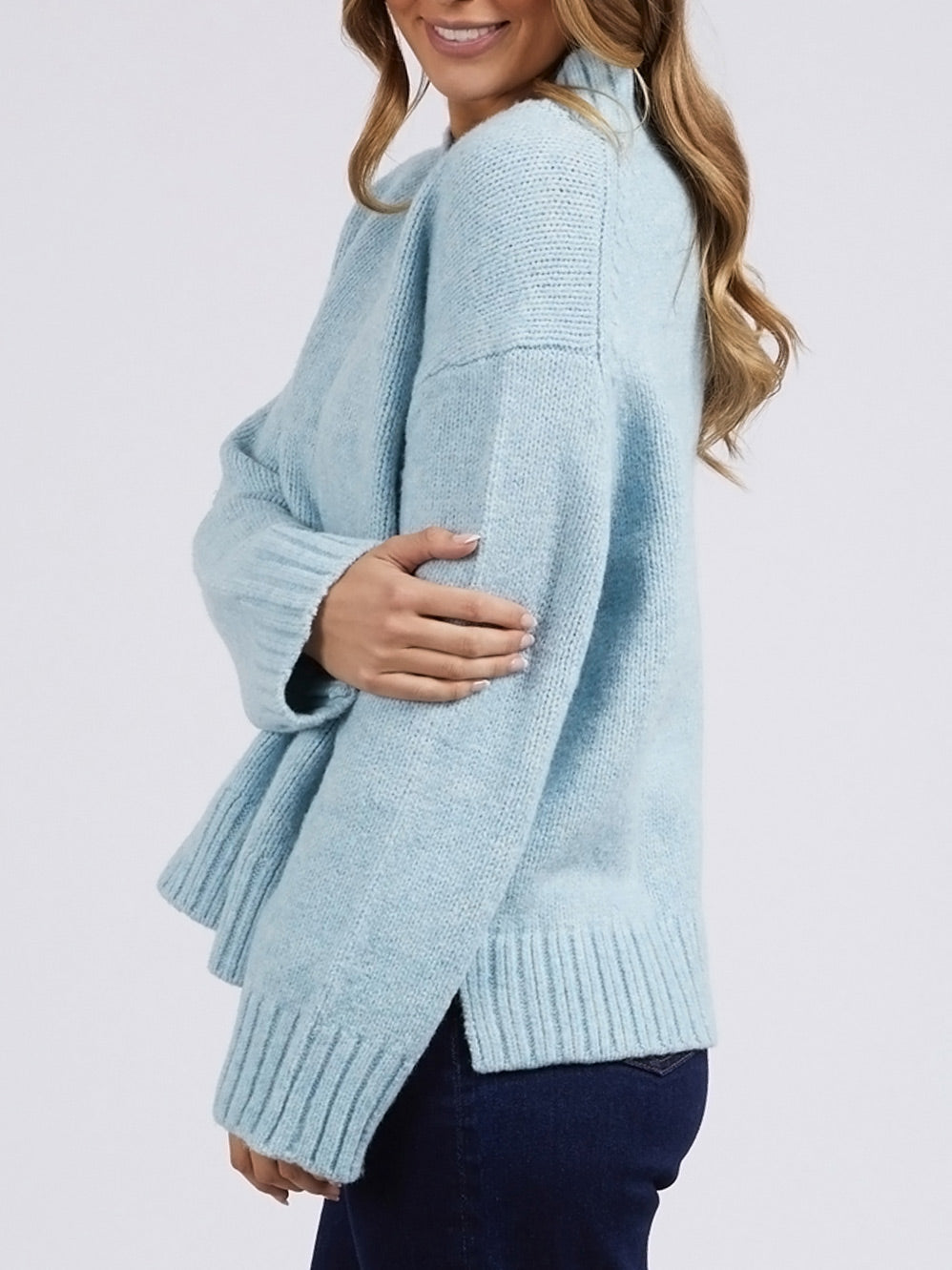 ZOEKOOVI HIGH CREW NECK CABLE KNIT